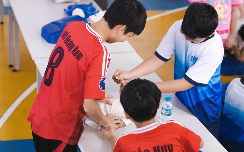 Học sinh và phụ huynh tham dự đã có cơ hội thực hành trên mô hình chuyên dụng, làm quen với quy trình sơ cứu bài bản trong môi trường có kiểm soát, từ đó hình thành phản xạ chính xác và bình tĩnh khi gặp tình huống thực tế.