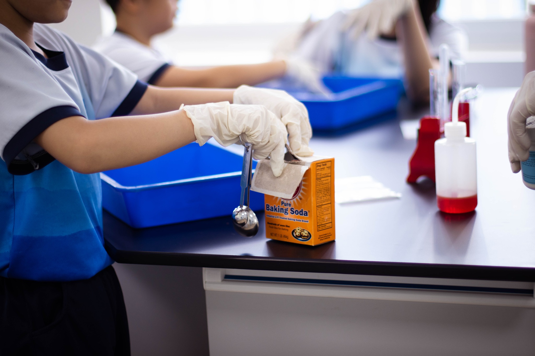 Trong tiết học Khoa học gần đây, các BRISers lớp 6 đã thực hiện thí nghiệm trộn Calcium Chloride, Bicarbonate Soda (baking soda) và dung dịch Phenol Red, một chất chỉ thị màu trong môi trường pH. Chỉ trong vài giây, dung dịch bắt đầu sủi bọt khí và chuyển màu, một phản ứng hóa học sinh động, minh chứng trực quan cho sự hình thành chất mới khi các chất phản ứng với nhau.